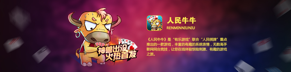 《人民牛牛》是“有乐游戏”联合“人民棋牌”重点推出的一款游戏,丰富有趣的系统表情,无数高手联网同台竞技,让您在线体验惊险刺激、有趣的游戏之旅。牛牛又名“斗牛”,是风靡中国中东部及南方百年的经典玩法,该游戏由2到5人玩一副牌(54张),其中一家为庄家,其余为闲家,发完牌后即可开牌比牌,庄家与所有闲家一一进行比较,牌型大者为赢,牌型小者为输。